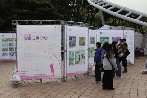 개화산봄꽃축제추진위원회(위원장 황순덕)가 진행한 ‘별을 그린 마당’ 시화전은 초등학생들이 ‘지구환경 살리기’를 주제로 그린 작품 603점을 전시하는 프로그램이다.