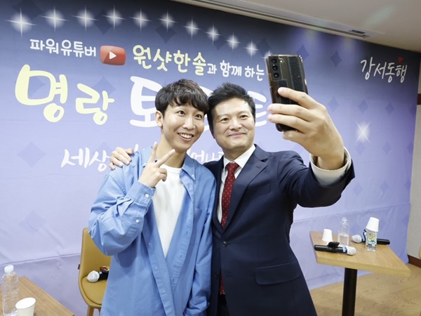 원샷 한솔(좌)와 김태우 강서구청장(우) 기념사진