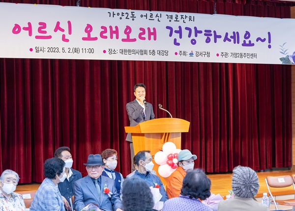 김태우 구청장은 행사 인사말에서 “하늘도 맑고 햇볕 좋은 날에 지역 어르신들을 모시고 경로행사를 하게 되어 더욱 기쁜 마음이다”며 “앞으로도 어르신들이 행복하고 건강한 노후를 보내실 수 있도록 어르신들의 건강과 복지, 여가생활 등 어느 것 하나 소홀함 없이 세심히 챙겨 나가겠다”고 약속했다.