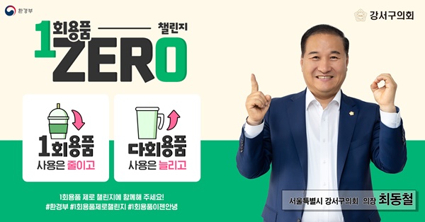 (서울=NSP통신) 강은태 기자 = 최동철 강서구의회 의장이 6일 7일 ‘1회용품 제로(1 zer0) 챌린지’에 동참했다.