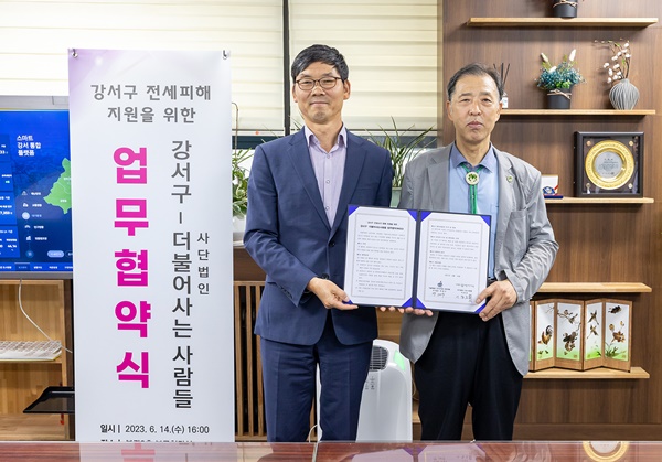 (서울=NSP통신) 강은태 기자 = 서울시 강서구는 14일 오후 4시 사단법인 더불어사는사람들과 전세 사기 피해자의 주거 안정을 위한 업무협약을 체결했다.