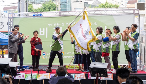 이날 비전선포식에는 조상현 방신전통시장 상인회장을 비롯해 상인회 관계자, 지역 직능단체장, 타지역 전통시장 상인회장, 주민 등 100여 명이 참석해 방신전통시장의 새로운 출발을 축하했다.