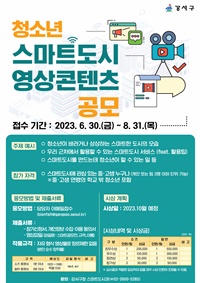 공모는 ▲쇼츠 동영상(1분 이내) ▲일반 동영상(3분 이내) 2개 부문으로 나뉘며 본인이 순수하게 창작한 자유 형식의 영상물을 제출하면 되고 스마트도시에 관심 있는 중고생 누구나 개인 또는 3명 이내 팀으로 참여할 수 있다.