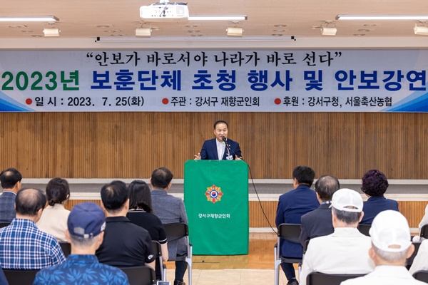 (서울=NSP통신) 강은태 기자 = 서울특별시 강서구의회(의장 최동철)는 25일 오후 2시 강서구청 지하상황실에서 개최된 ‘2023년 강서구 재향군인회 보훈단체 초청 행사 및 안보 강연’에 참석했다.
