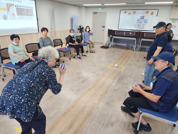 또 뇌성마비 중증 장애인과 운동성 장애인을 위해 고안된 ‘보치아 운동’은 어르신들의 근조절기능 향상을 돕고 있다.