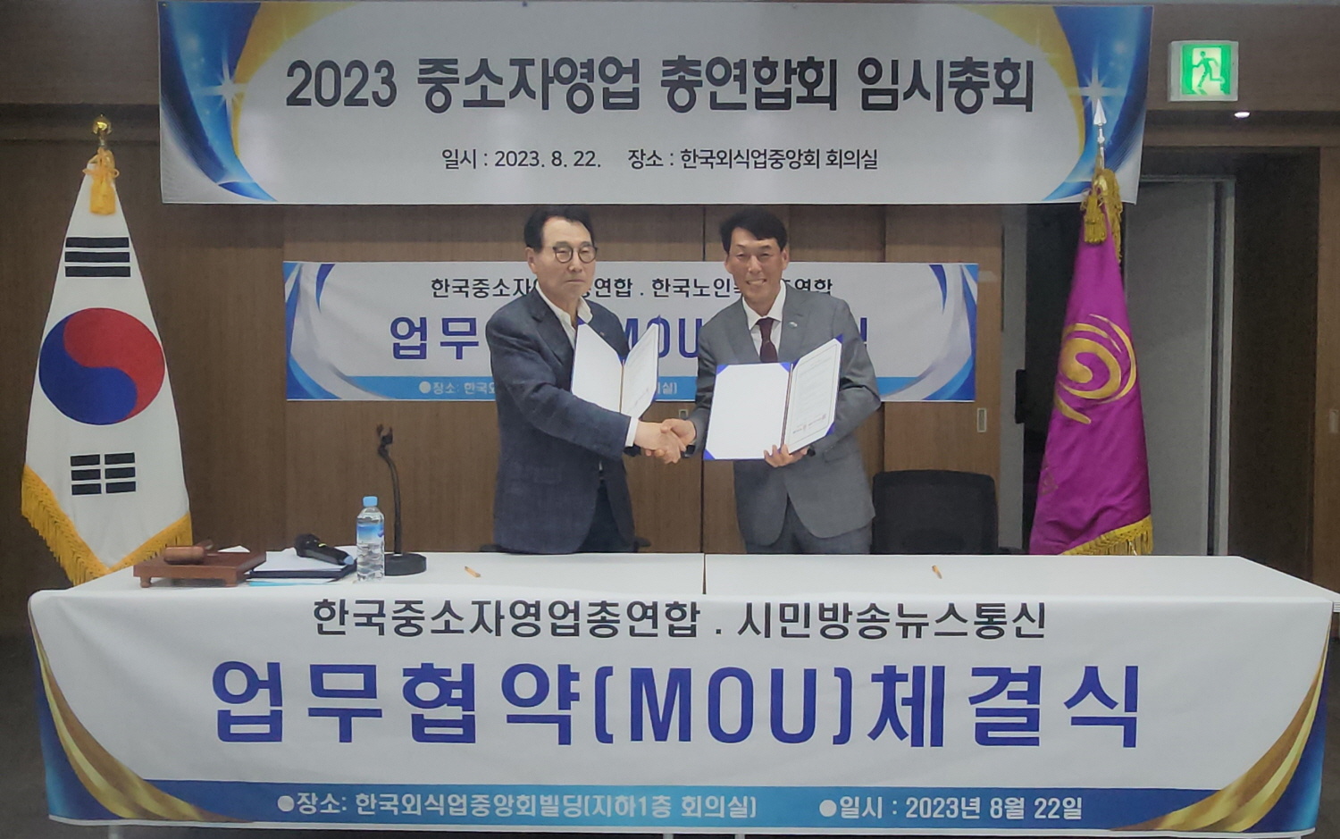 이어 박태근, 정석근 씨가 감사로 선임됐으며 중소자영업자총연합회와 시민방송뉴스통신(대표 김종호)간의 각종 수입사업 참여 및 폐쇠몰 광고에 대한 협약식이 진행됐다.