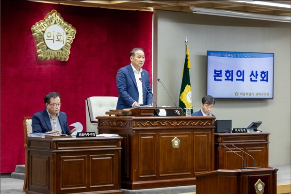 한편 이날 두 명의 의원이 5분 자유발언을 진행했다. 먼저 이충현 의원은 마곡동 도로점용 불허가 처분 건과 인서울27골프장 폐기물 건 및 염창근린공원 내 불법 건설 장비와 차량 등으로 인한 주민 불편 건 등의 개선을 촉구했고 홍재희 의원은 지난 4개월 간 권한대행 체제의 구정을 돌아보며, 박대우 부구청장의 성실한 권한대행 수행을 촉구했다.