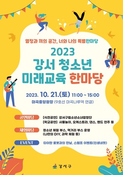 (서울=NSP통신) 강은태 기자 = 서울시 강서구(구청장 진교훈)가 오는 21일 오전 11시~오후 3시 마곡 중앙광장에서 ‘2023 강서 청소년 미래교육 한마당’을 개최한다.