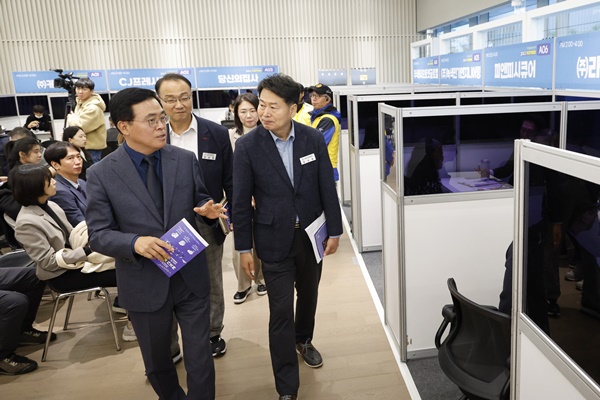 (서울=NSP통신) 강은태 기자 = 진교훈 서울 강서구청장은 8일 오후 2시 마곡동 서울창업허브엠플러스에서 열린 ‘2023년 제2회 강서구 취업박람회’를 찾아 청년들의 취업 현장을 직접 점검했다.