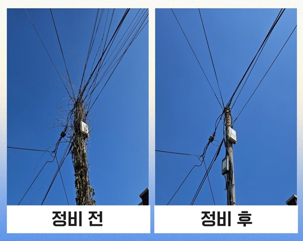 구는 이러한 문제를 해결하기 위해 한국전력, 방송 통신 사업자 등과 함께 매년 공중케이블 정비추진단을 구성해 집중적으로 정비가 필요한 구간을 선정해 사업을 추진하고 있다.