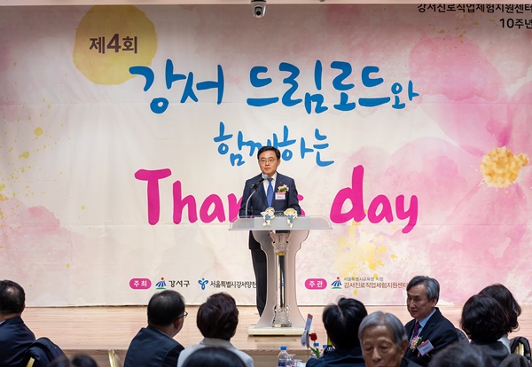 (서울=NSP통신) 강은태 기자 = 진교훈 서울시 강서구청장이 ‘강서 드림로드와 함께하는 감사의 날’ 행사에서 학생들의 꿈을 위해 지원을 아끼지 않을 것이라고 약속했다.