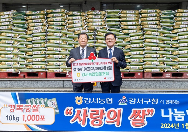 (서울=NSP통신) 강은태 기자 = 서울시 강서구(구청장 진교훈)가 강서농협(조합장 장순석)으로부터 지역 소외계층 지원을 위한 쌀 10kg 1000포를 전달받았다.