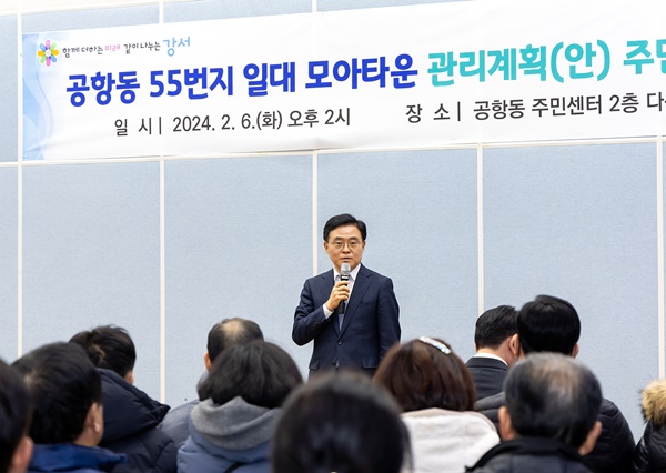 (서울=NSP통신) 강은태 기자 = 서울시 강서구청(구창징 진교훈)이 6일 오후 2시 공항동 주민센터에서 열린 ‘공항동 55번지 일대 모아타운 관리계획안 주민설명회’를 개최했다.