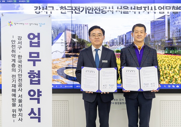 (서울=NSP통신) 강은태 기자 = 서울시 강서구(구청장 진교훈)가 한국전기안전공사 서울서부지사(지사장 이은석)와 ‘안전취약 계층의 전기 재해예방을 위한 업무협약’을 체결했다.