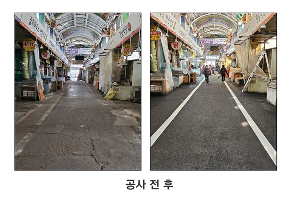 이에 구는 보행환경을 개선해 상인들과 주민들이 전통시장을 더 편리하게 이용할 수 있도록 시장 내 도로 재포장 공사를 진행했다.