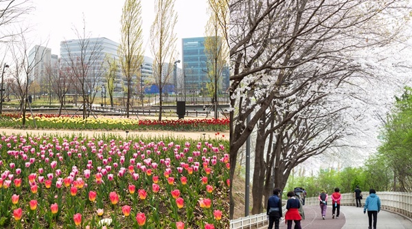 구는 강서구 봄꽃 로드 5선으로 ▲방화근린공원 벚꽃 터널 ▲서울식물원에 피어있는 튤립존 ▲우장산 근린공원 산책로 ▲벚꽃이 만개한 곰달래로 일대 ▲국립항공박물관 일대에 피어있는 벚꽃 나무 등을 소개했다.