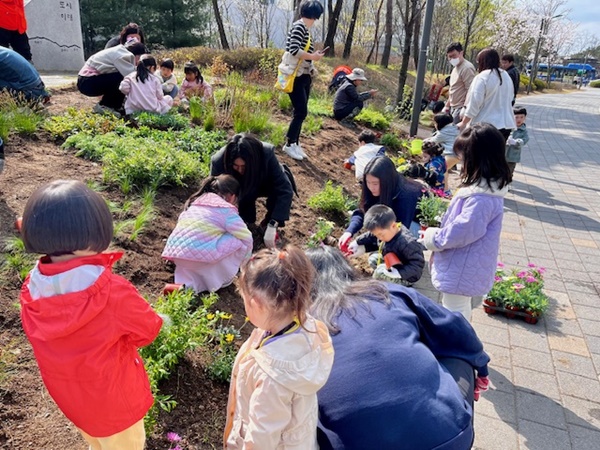 이날 체험은 마곡역 1번 출구 인근 녹지공간에서 이뤄졌다. 현장 체험에 참여한 마곡8 열린숲어린이집 원아 20여 명은 수국과 톱풀 등 20여 종류의 봄꽃과 나무를 심었다.