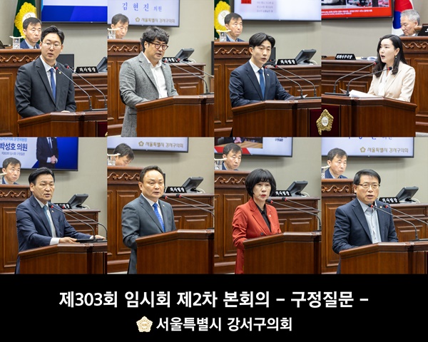 (서울=NSP통신) 강은태 기자 = 서울시 강서구의회(의장 최동철)가 지난 26일과 29일 제303회 임시회 제2·3차 본회의를 개최해 구정질의를 실시하고 집행부로부터 답변을 청취했다.