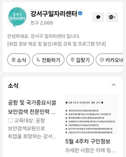 이와 함께 구는 ‘강서구 일자리센터’ 카카오톡 채널도 확대 운영한다.