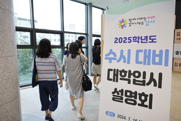 (서울=NSP통신) 강은태 기자 = 서울시 강서구(구청장 진교훈)는 16일 강서아트리움에서 수험생과 학부모를 대상으로 ‘2025학년도 수시 대비 대학입시 설명회’를 개최했다.