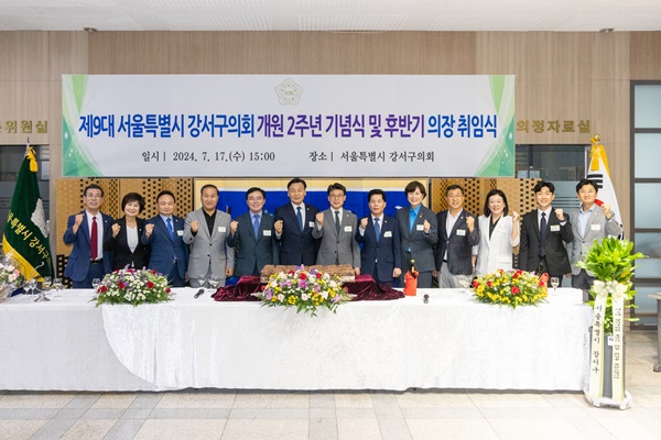 (서울=NSP통신) 강은태 기자 = 서울시 강서구의회(의장 박성호)가 17일 오후 3시 의회 1층 로비에서‘제9대 강서구의회 개원 2주년 및 후반기 의장 취임식’을 개최했다.