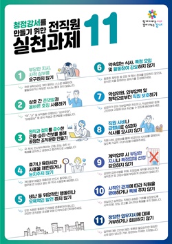 구는 이러한 목표를 달성하기 위해 ‘청정 강서를 만들기 위한 전 직원 실천 과제 11’을 선정하고 전 직원 실천 운동을 추진한다.