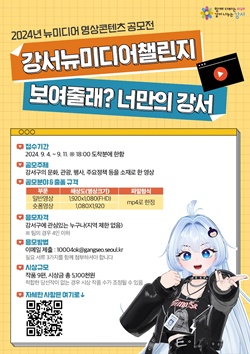 (서울=NSP통신) 강은태 기자 = 서울시 강서구(구청장 진교훈)가 오는 9월 4일부터 11일까지 ‘2024년 뉴미디어 영상 콘텐츠 공모전’인 ‘강서영상챌린지 보여줄래?-너만의 강서’를 실시한다.