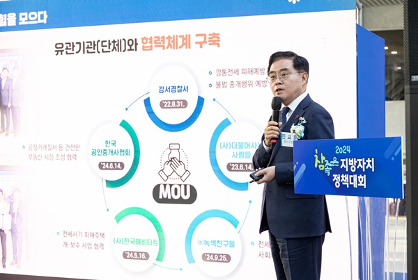 한편 강서구는 기초자치단체 최초로 ‘전세 사기 피해 지원 조례’를 제정하고 전국 최초로 전세 사기 피해자 전수 실태 조사를 실시하는 등 자치구 중 가장 빠르게 문제에 대응하며 언론에 집중 관심을 받았다. 또 12억 원의 예산을 편성해 기초단체 최초로 소송경비를 지원하고 전세 피해 사례집을 제작하는 등 실질적 지원을 위해 다양한 노력을 기울인 결과 현행제도의 문제점을 공론화해, 특별법 개정과 정부 정책에 반영하는 성과를 거두었다.