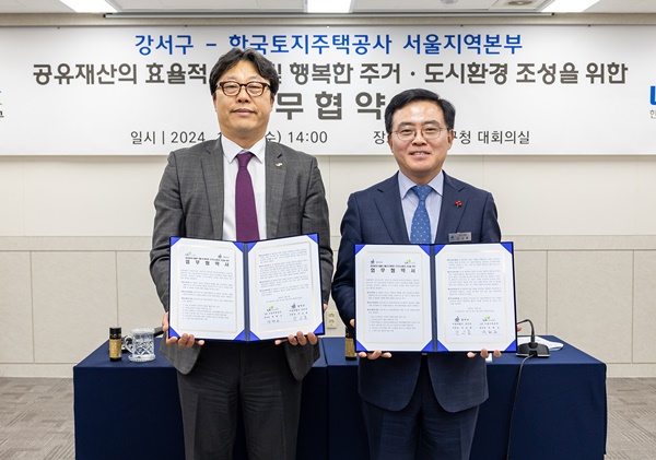(서울=NSP통신) 강은태 기자 = 서울시 강서구(구청장 진교훈)와 LH(한국토지주택공사) 서울지역본부(본부장 박현근)가 ‘공유재산의 효율적 개발 및 행복한 주거·도시환경 조성을 위한 업무협약’을 체결했다.