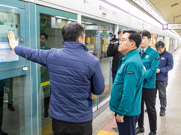 진교훈 강서구청장, 강추위에도 까치산역 안전 현장점검