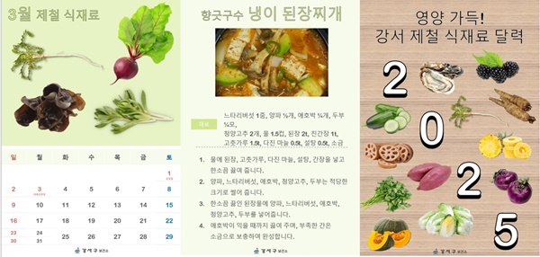 구는 건강하고 영양이 풍부한 식단 구성을 돕기 위해 ‘영양 가득 강서 제철 식재료 달력’을 기획하고 월별 제철 식재료와 요리법을 함께 안내한다.