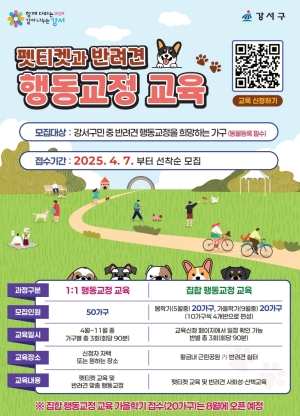 교육 참가 희망자 모집은 강서구에 거주하고, 동물등록을 완료한 반려 가구로 오는 18일까지다. 과정별 마감은 선착순이다.