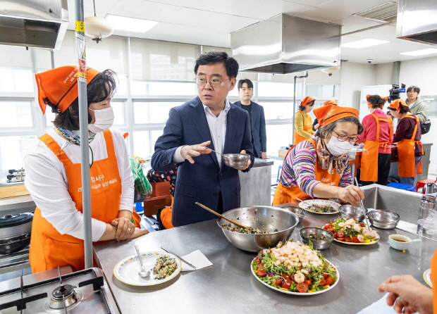 진 구청장은 수강생들과 음식을 함께 맛보며 요리 과정, 참여 소감, 건강관리 방법 등에 대해 이야기를 나누며 시간을 보냈다.
