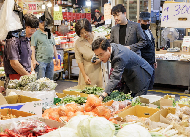 이어 물건을 구매하러 나온 주민들과 인사를 나누며 “전통시장을 자주 찾아달라”며 전통시장 장보기를 독려했다.
