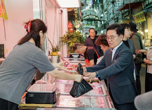 진 구청장은 강서구 방신전통시장을 찾아 정육점, 채소 가게 등 시장 내 상점 곳곳을 들려 농축산물을 구매했다. 실제 온누리상품권으로 돼지고기, 대파, 찹쌀, 거봉 등을 구매해 장바구니 체감 물가도 살폈다.