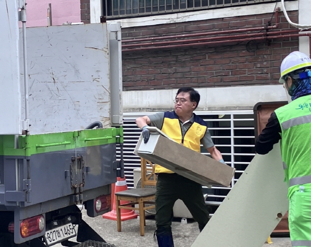 진 구청장을 비롯한 작업자들은 35도를 육박하는 극한 폭염 속에도 반지하 주택과 창고 등에 쌓인 수해 잔해물을 치우며 복구 작업에 열을 올렸다. 이들은 점심도 도시락으로 해결하고 복구 작업을 이어 나갔다.