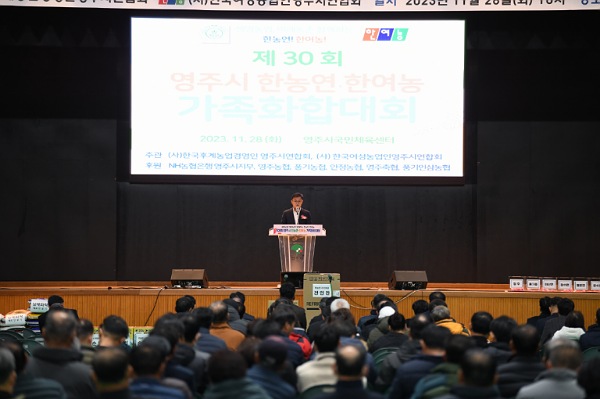 (경북=NSP통신) 김오현 기자 = 영주시 한국후계농업경영인영주시연합회와 한국여성농업인영주시연합회은 28일 영주국민체육센터에서 회원 900여 명이 참여한 가운데 ‘제30회 영주시 한농연·한여농 가족화합대회’를 개최했다.