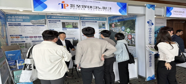 이날 포항테크노파크에서는 수소연료전지시스템 및 핵심소재부품 전분야 검인증(KOLAS, KS, 대용량)이 가능한 ‘수소연료전지 인증센터’ 홍보부스를 운영하며, 인증센터가 보유하고 있는 장비 및 평가인증에 대해 홍보해 학회 참석자의 큰 관심을 받았다.
