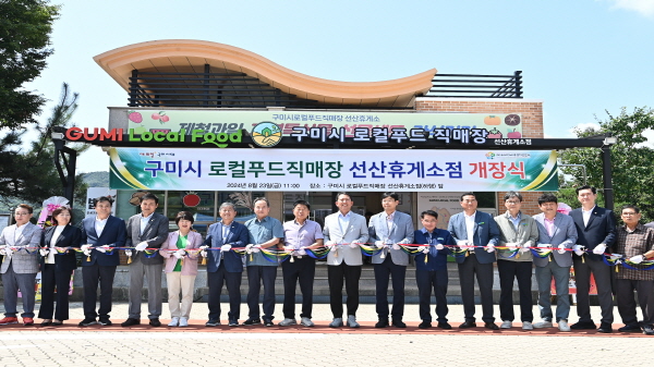 (경북=NSP통신) 조인호 기자 = 구미시는 23일 중부내륙고속도로 선산휴게소 내 구미시 로컬푸드직매장 선산휴게소점에서 김장호 구미시장, 양진호 구미시의회 부의장과 도·시의원 및 기관·단체장 등 70여 명이 참석한 가운데 개장식을 개최했다.