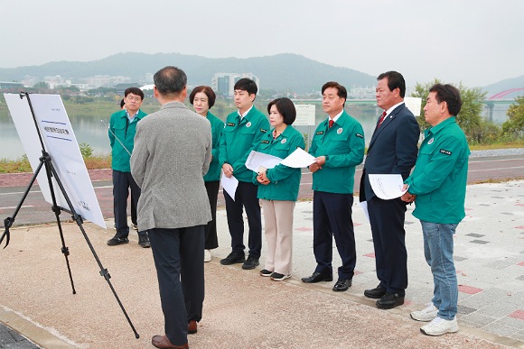 이날 현장 방문은 낙동강변 양안 둔치에 조성되는 맨발산책로 조성사업 현장 유해물질 검출로 인해 경찰서 조사 중인 사안에 대해 현황 파악과 향후 계획 점검을 위해 실시했다.