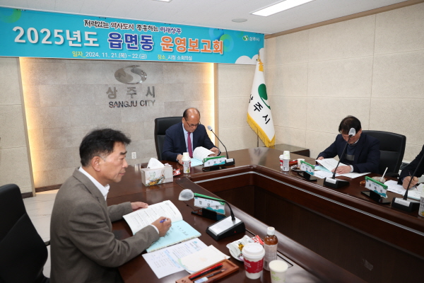 (경북=NSP통신) 김대원 기자 = 상주시는 지난 21일부터 22일까지 2일간 시청 소회의실에서 강영석 상주시장 주재로 ‘2025년도 읍면동 운영보고회’를 개최했다.