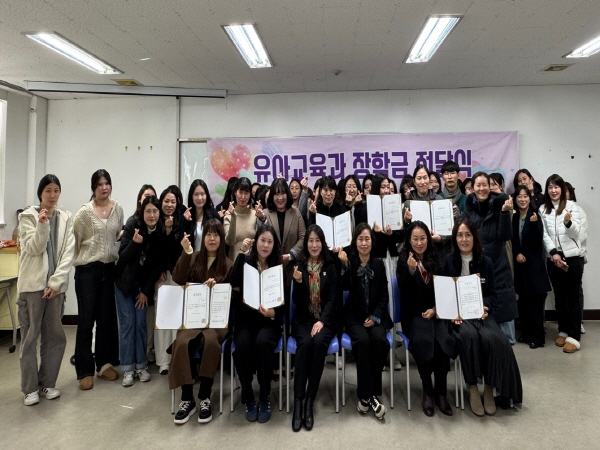 장학금을 받은 2학년 박소혜 학생은 “훌륭한 선배님들이 베풀어 주시는 큰 사랑과 열정이 있어 오늘 받은 장학금이 더욱 의미가 크다”며 “선배들의 마음을 본받아 유아교육의 발전을 위해 노력하며 미래 후배들에게 나눌 수 있는 사람으로 성장하겠다”고 소감을 밝혔다.