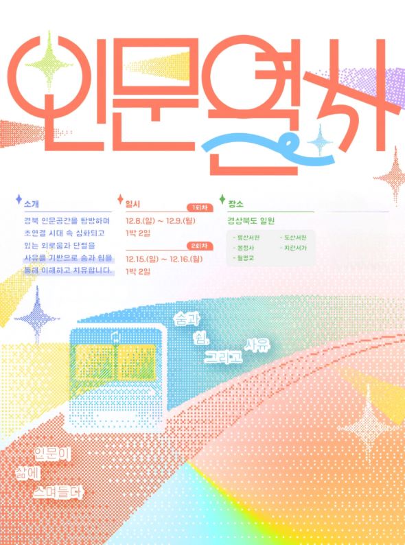 (경북=NSP통신) 김오현 기자 = 문화체육관광부가 주최하고 한국문화예술위원회가 주관하는 ‘인문열차’ 프로그램이 오는 8일부터 9일까지, 15일부터 16일까지 2회에 걸쳐 1박 2일 동안 안동시 일원에서 개최된다.