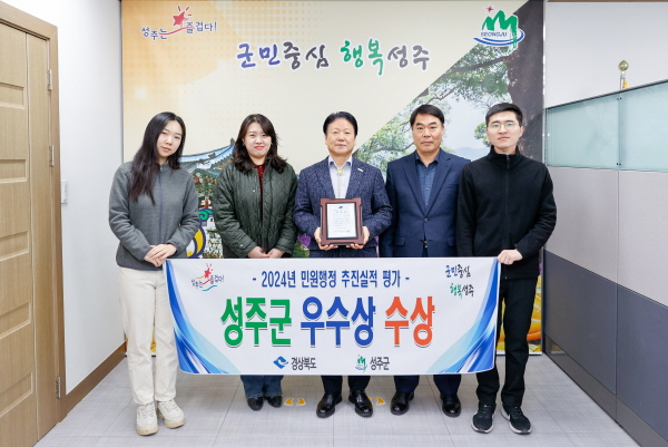 (경북=NSP통신) 김대원 기자 = 성주군은 22개 시군을 대상으로 실시하는 ‘2024년도 경상북도 민원행정 추진실적 평가’에서 군민을 위한 다양한 민원 시책 등을 발굴하고 추진한 노력으로 ‘우수상’을 받았다.
