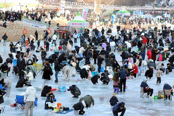 올해는 지난 13일 실시한 얼음두께 측정에서 얼음축제 권고기준(25cm~30cm) 이상인 25~37cm가 측정돼 축제 운영이 충분히 가능할 것으로 보인다.