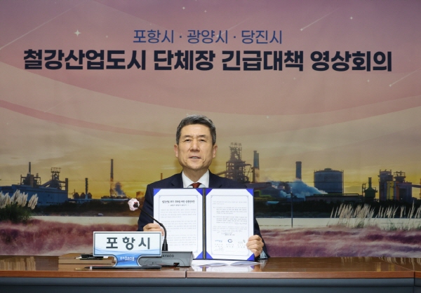 (경북=NSP통신) 조인호 기자 = 글로벌 통상환경 악화로 철강산업의 위기가 고조되고 있는 가운데 포항시는 13일 광양·당진시와 ‘철강산업도시 단체장 긴급대책 영상회의’를 갖고 공동 대응 모색에 나섰다.