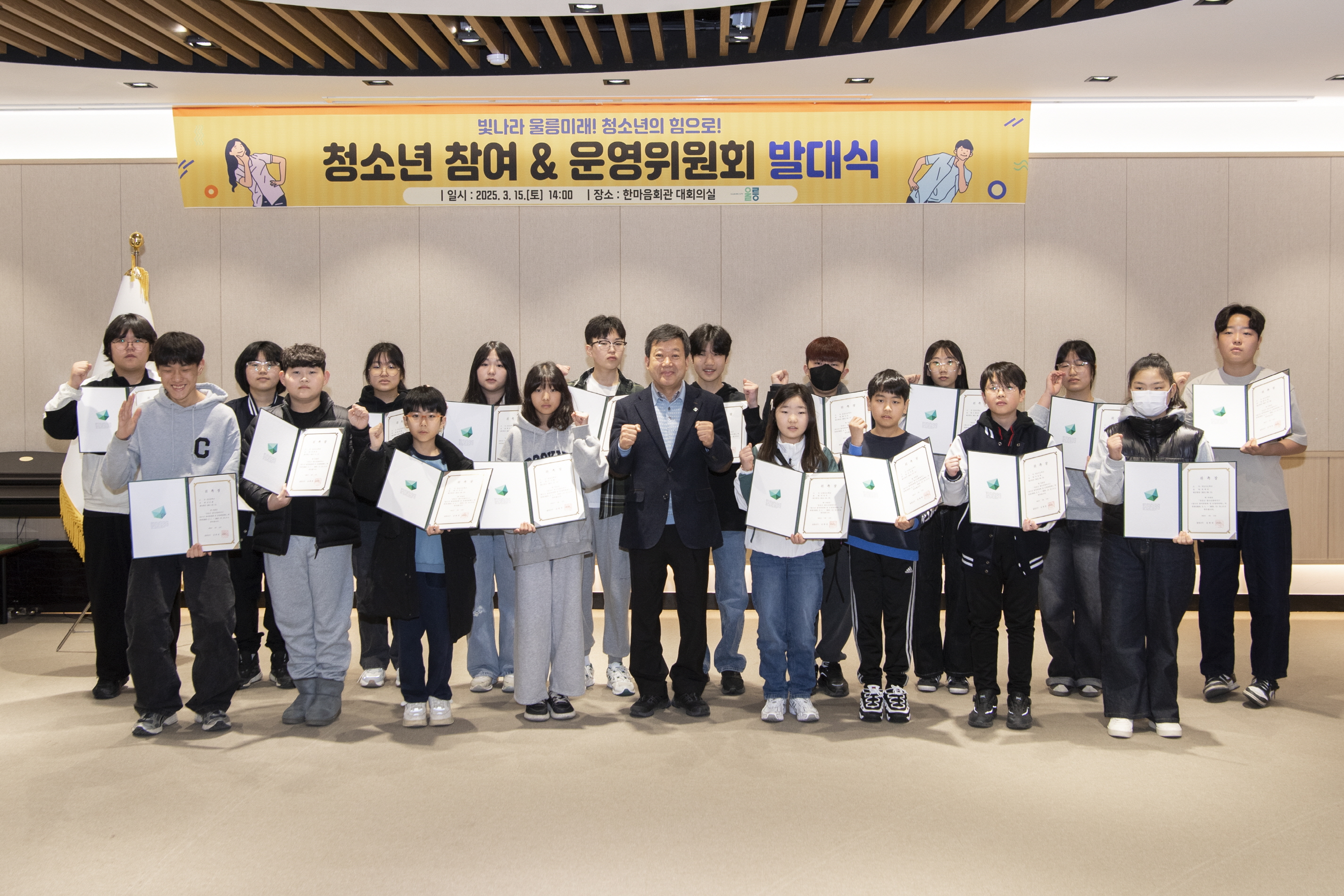 이날 발대식에는 남한권 울릉군수, 울릉군 문화체육과장 등 주요 관계자가 참석해 청소년 대표 18명에게 위촉장을 수여했다.