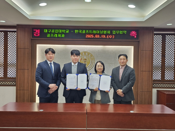 지난 19일 대구공업대학교 골프레저과와 한국골프트레이닝협회 간 학과 맞춤형 활동 상호발전을 위한 공동업무 협약을 본 대학에서 체결했다. (사진 = 대구공업대학교)