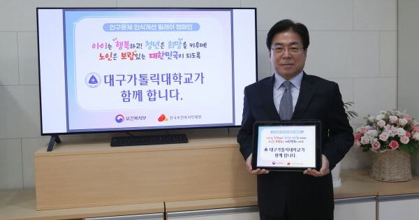 (경북=NSP통신) 김대원 기자 = 대구가톨릭대 성한기 총장은 31일 인구문제 인식개선 릴레이 캠페인에 동참했다.