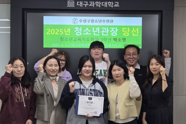 (경북=NSP통신) 김대원 기자 = 대구과학대학교(총장 박지은) 청소년교육지도학과 박소영(18·여) 씨가 대구 수성구청소년수련관 제4대 청소년관장에 당선됐다. 임기는 1년이다.